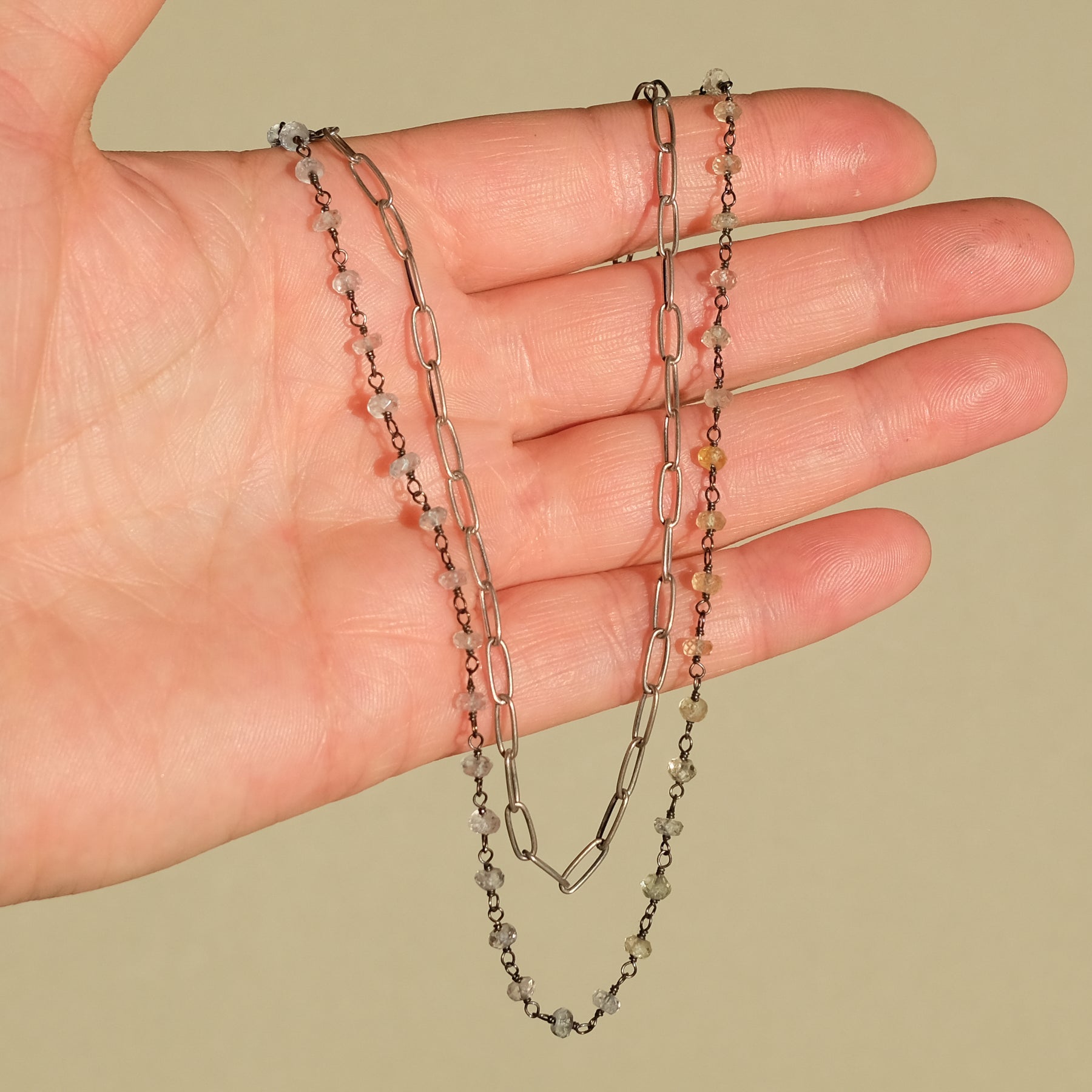 🔗 Paperclip Chain: The perfect complement, this modern chain style adds a sleek and edgy contrast to the organic gemstones.