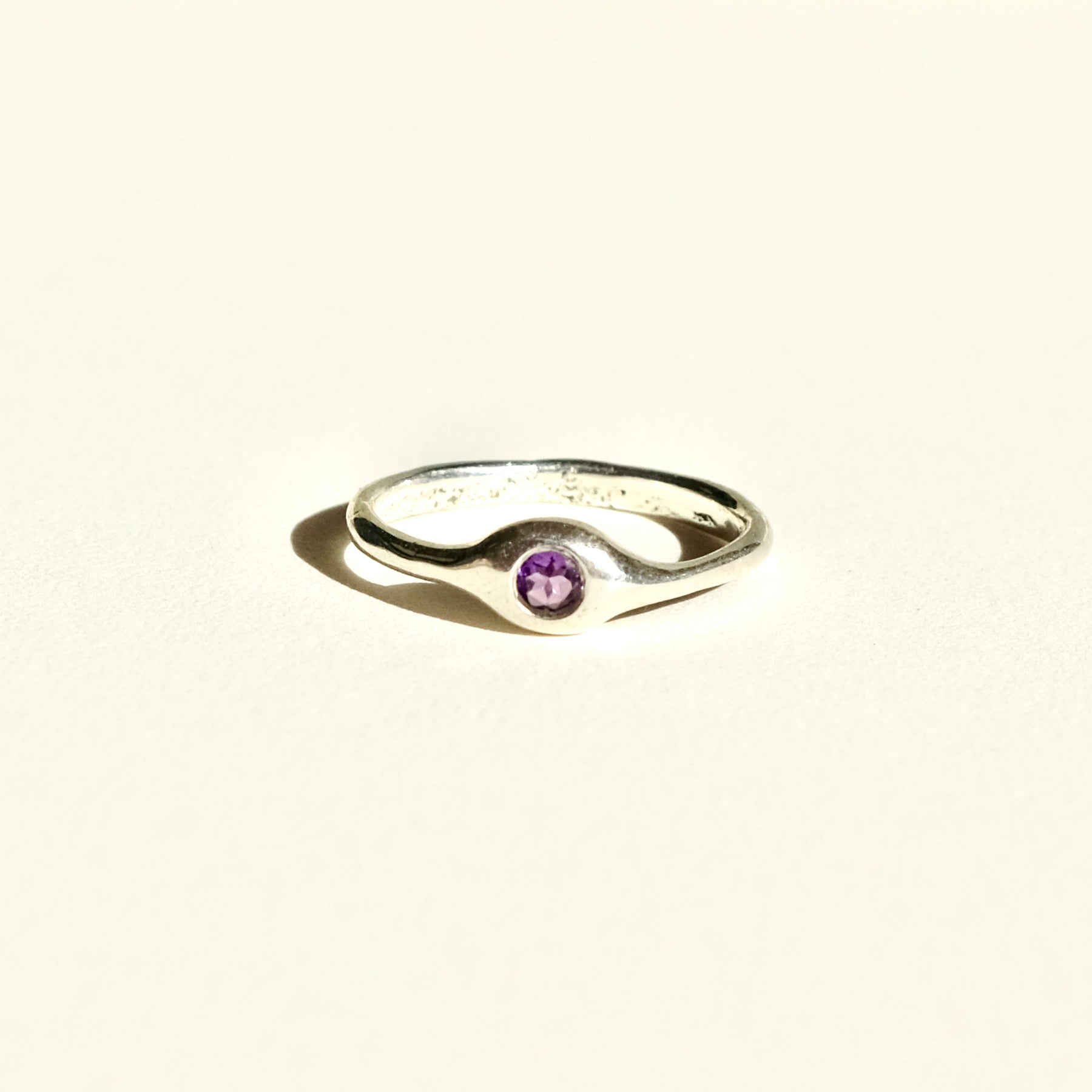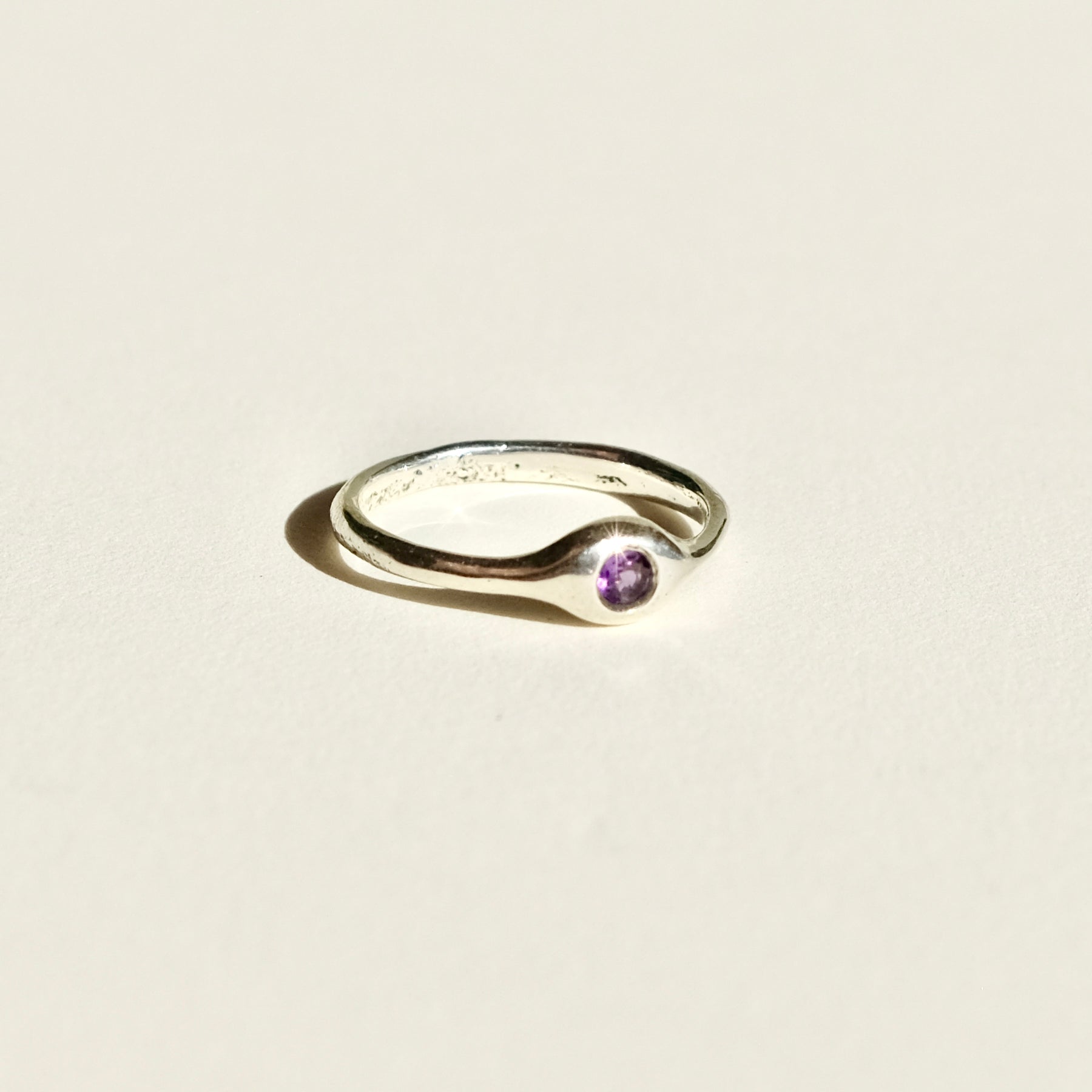 Sand Cast Amethyst Ring — Brilliant-Cut Stone in Sterling Silver (Size 7.25)