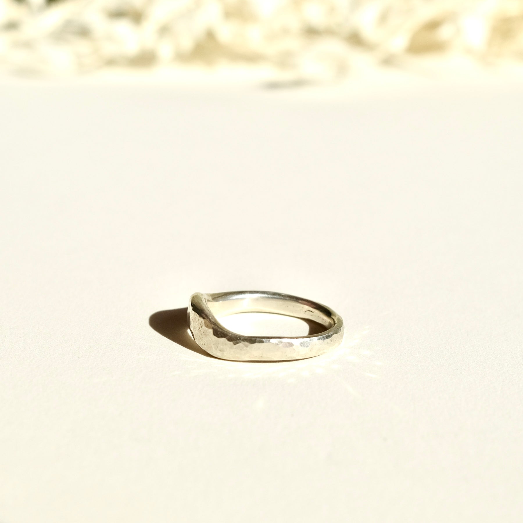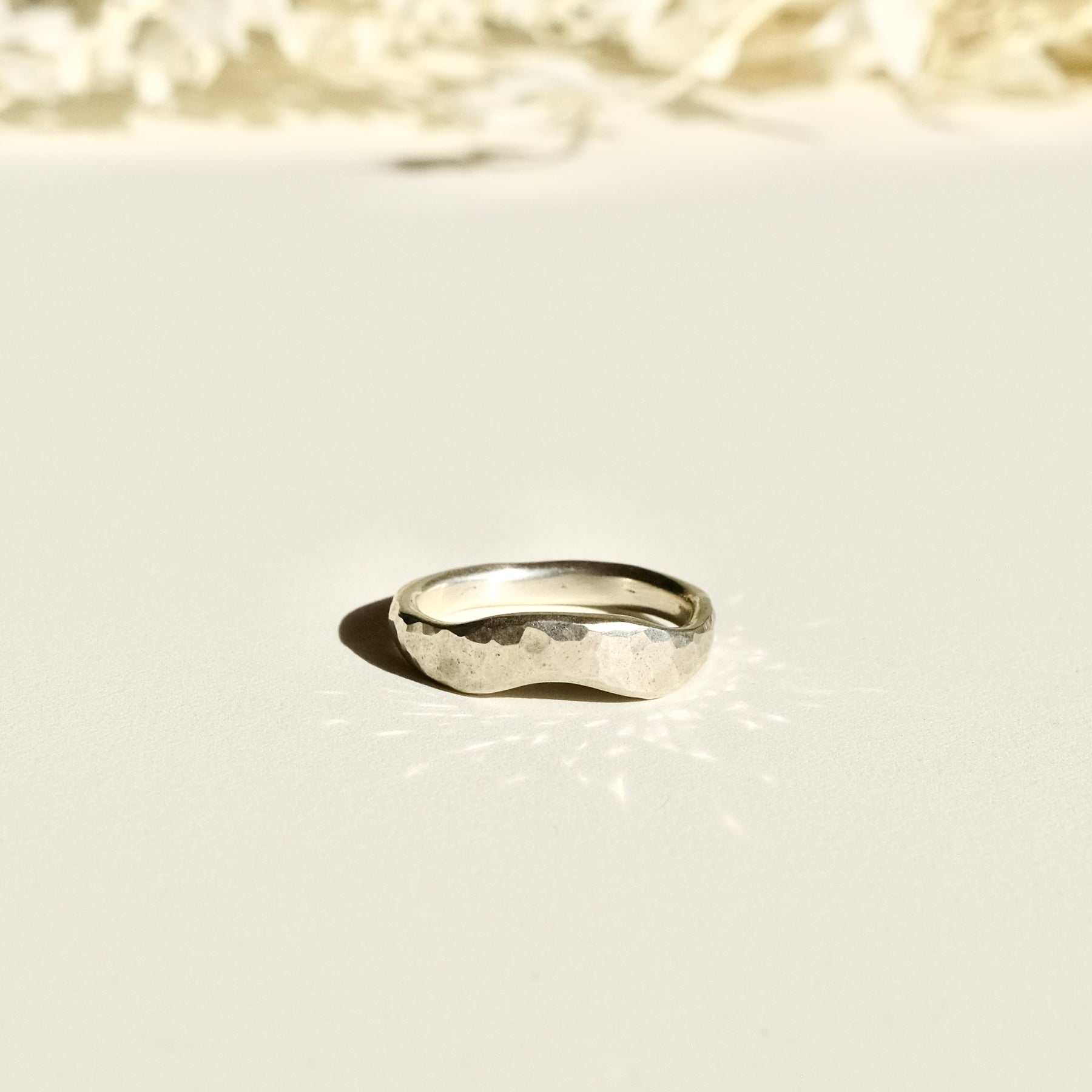 Each Sterling Silver Sand-Cast Ring is a one-of-a-kind creation, crafted using a timeless process that blends artistry and raw, organic beauty. The rings are first carved out of wax, with every curve and texture carefully shaped by hand. From there, the mold is made out of sand, giving each piece its unique, natural texture. The outside of the ring has a hammered texture that beautifully captures the light!