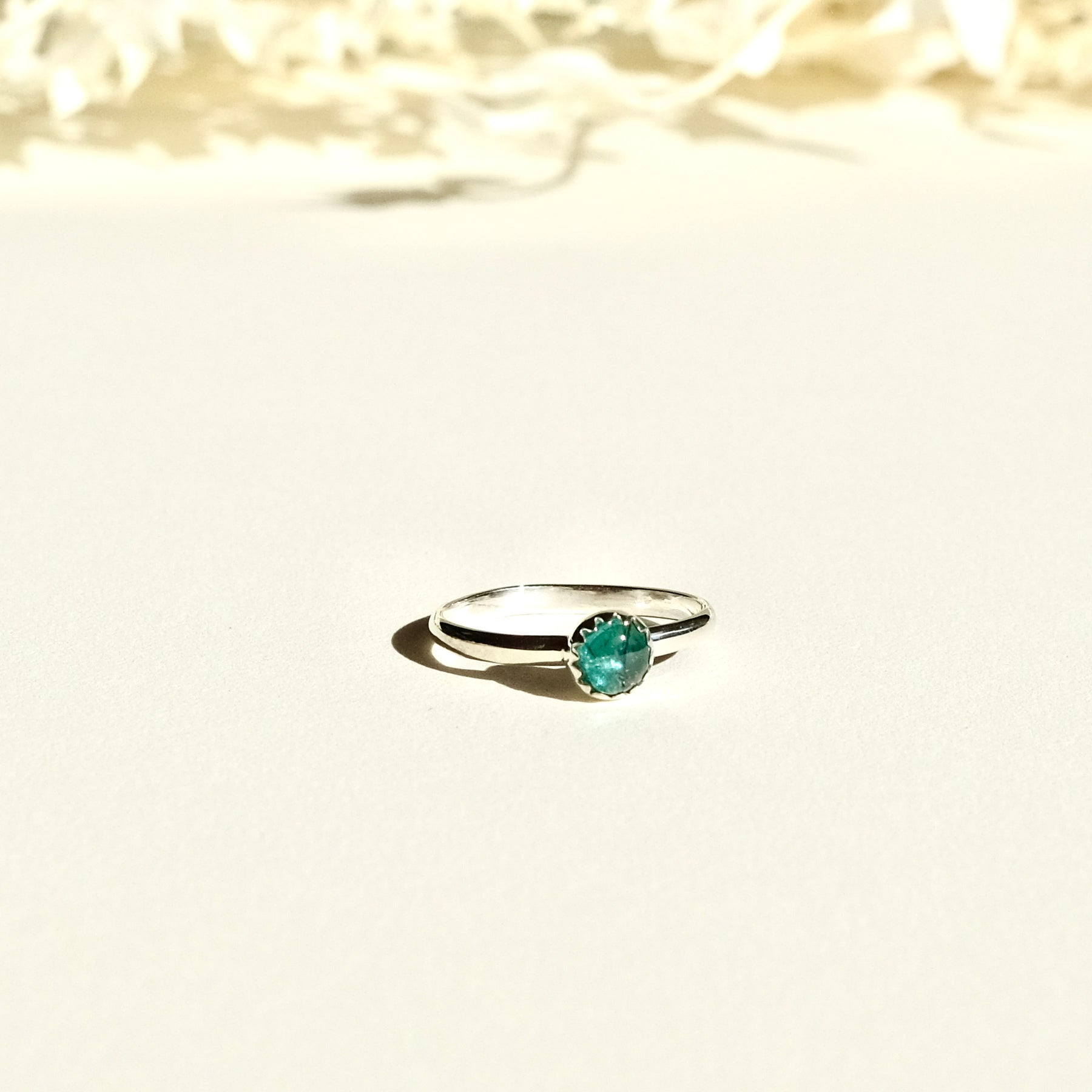 A vibrant and versatile addition to any jewelry collection, this Teal Tourmaline Stacking Ring brings subtle color, balance, and understated beauty to your fingers.