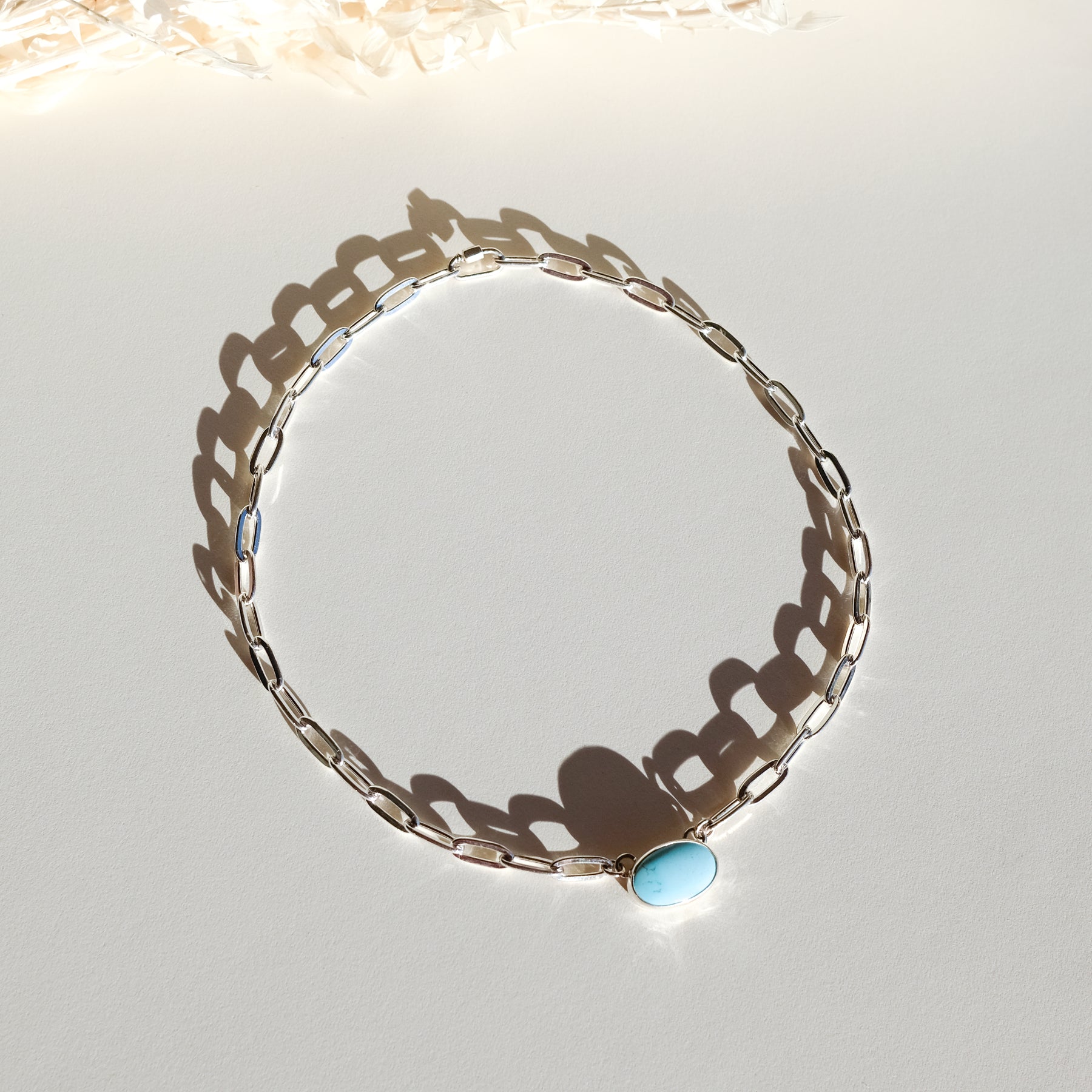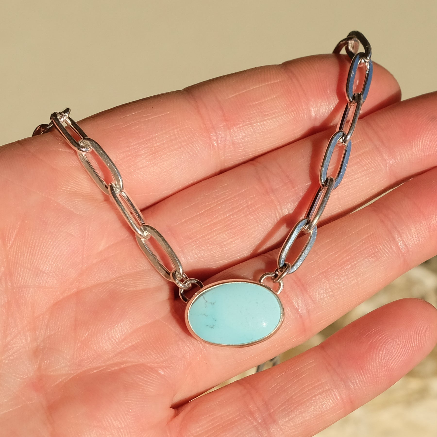 Turquoise Necklace with Paperclip Chain and Carabiner Clasp