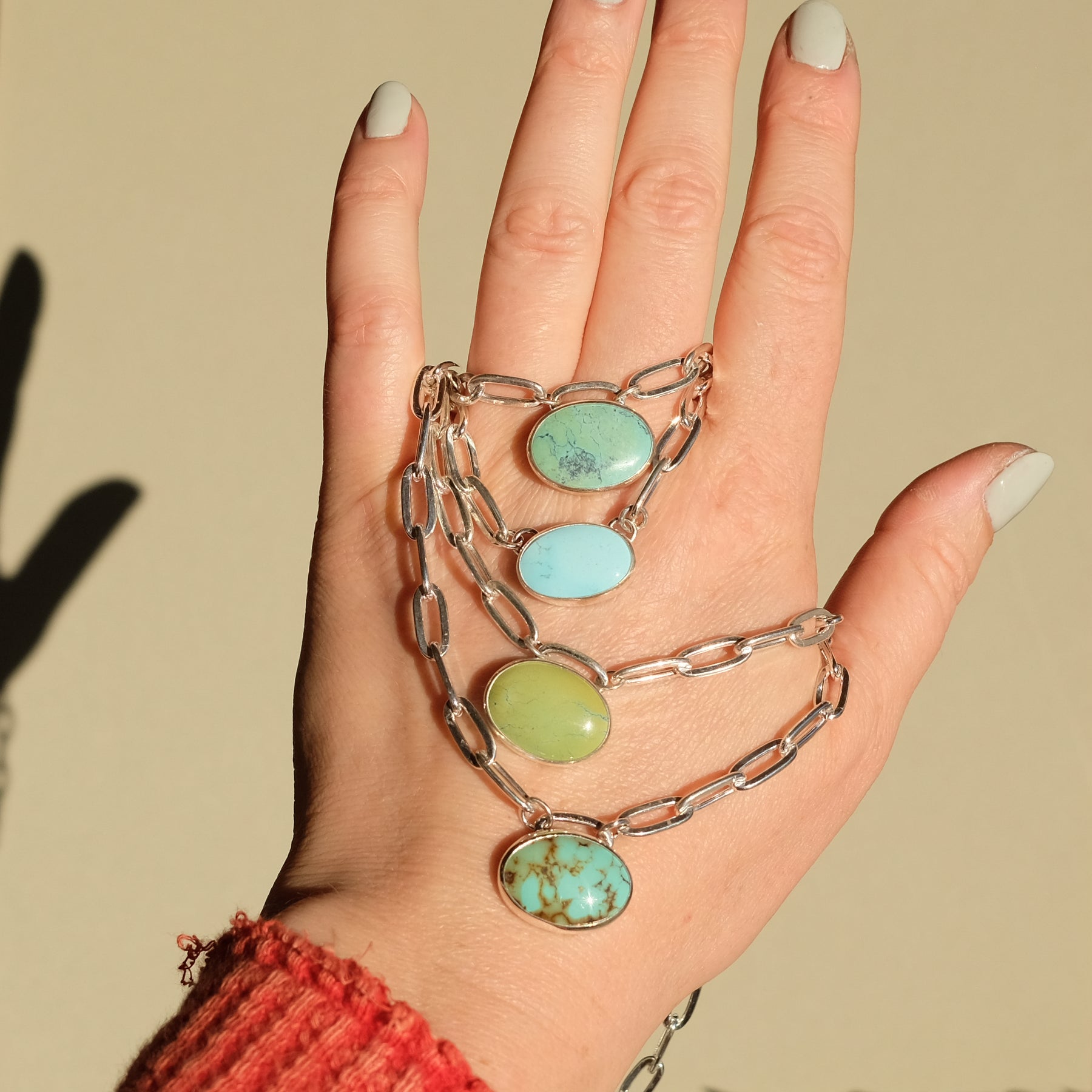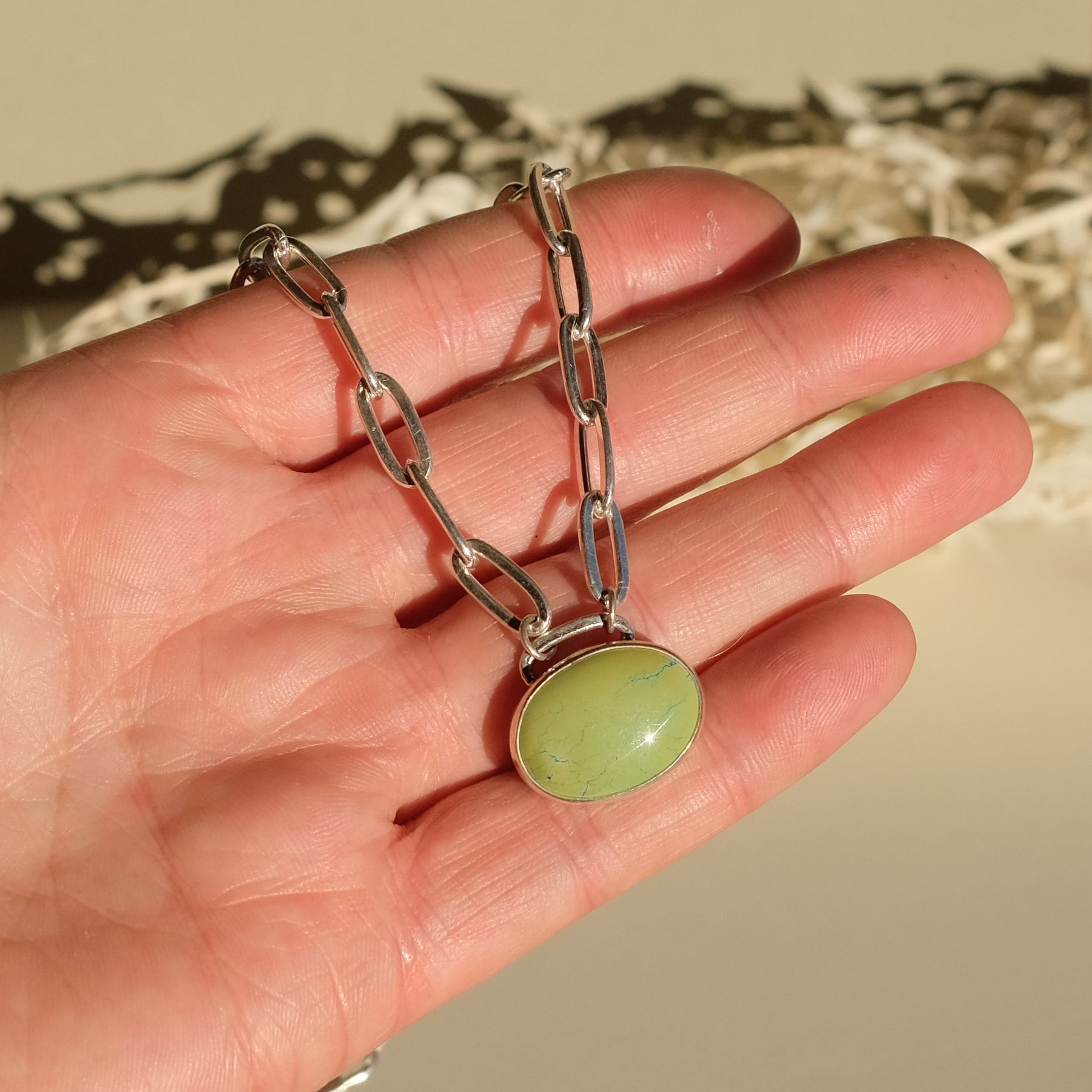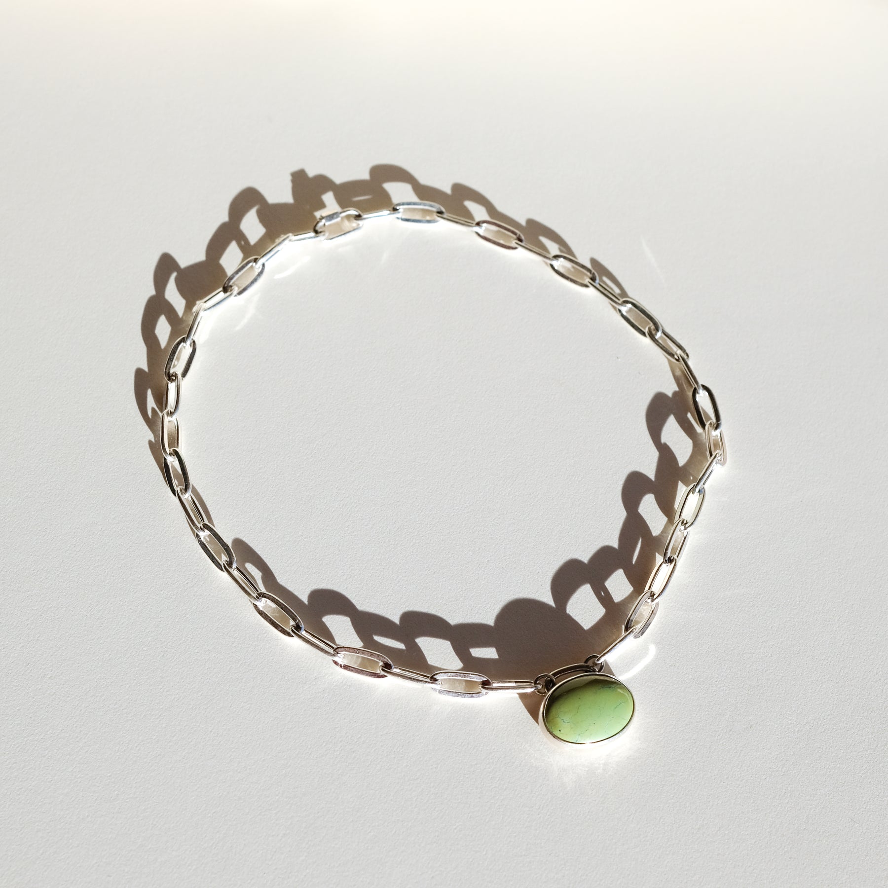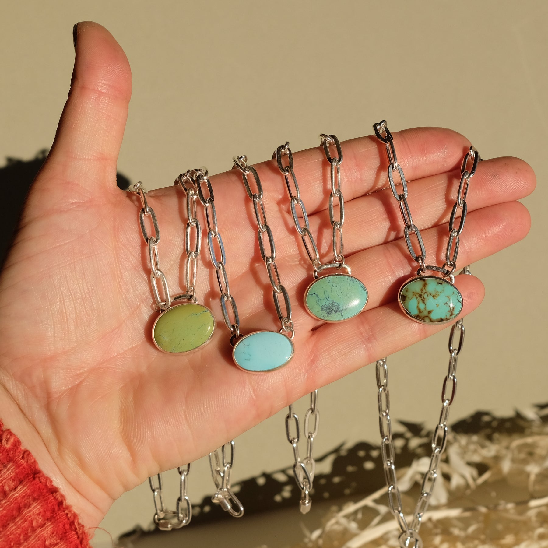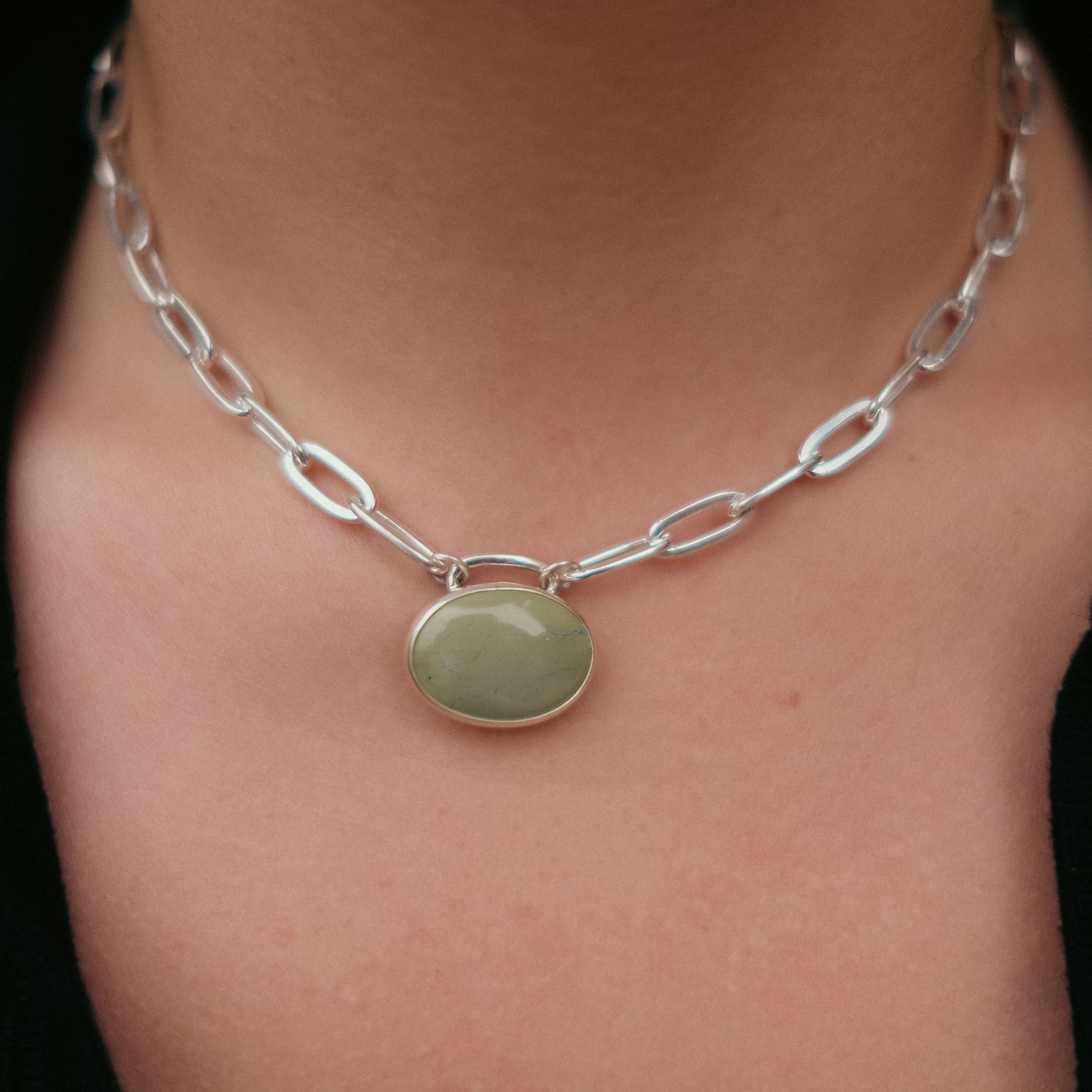 Turquoise Necklace with Paperclip Chain and Carabiner Clasp