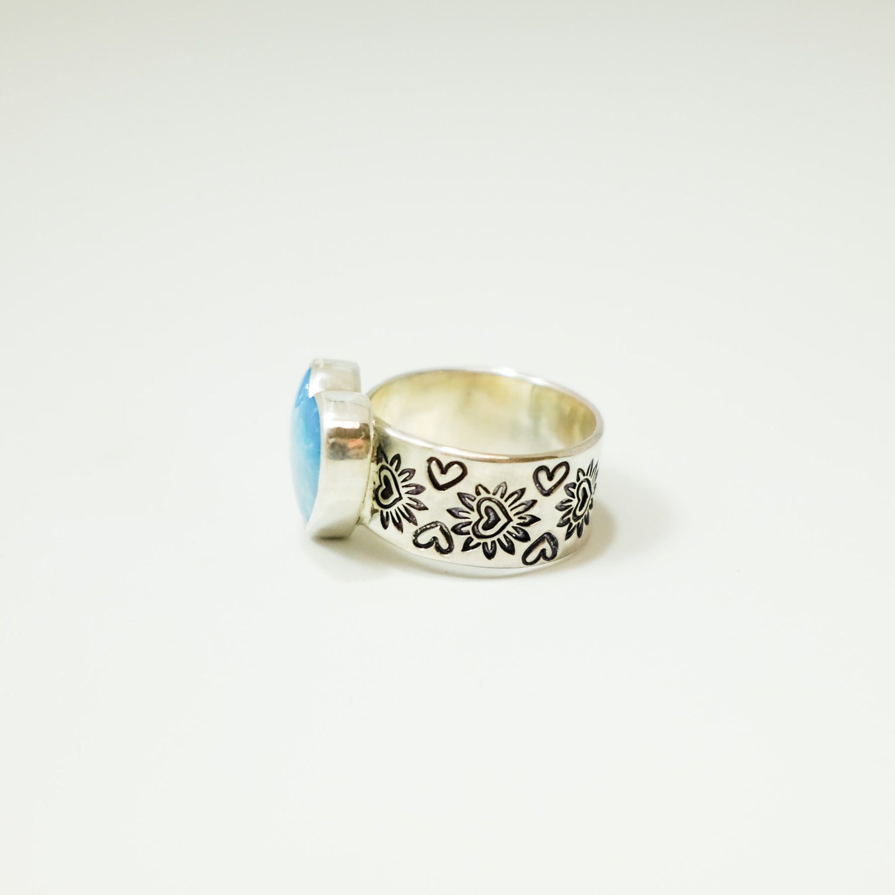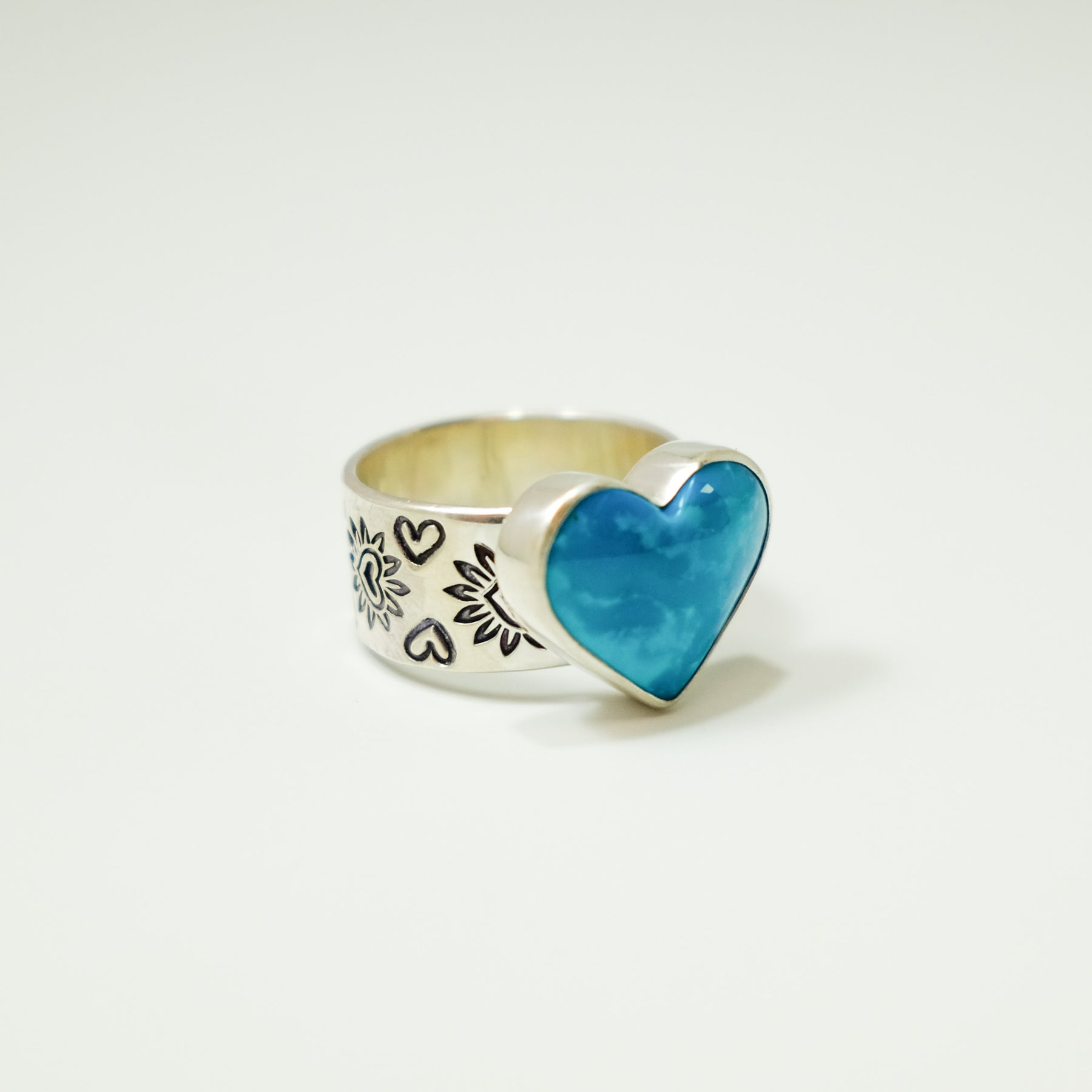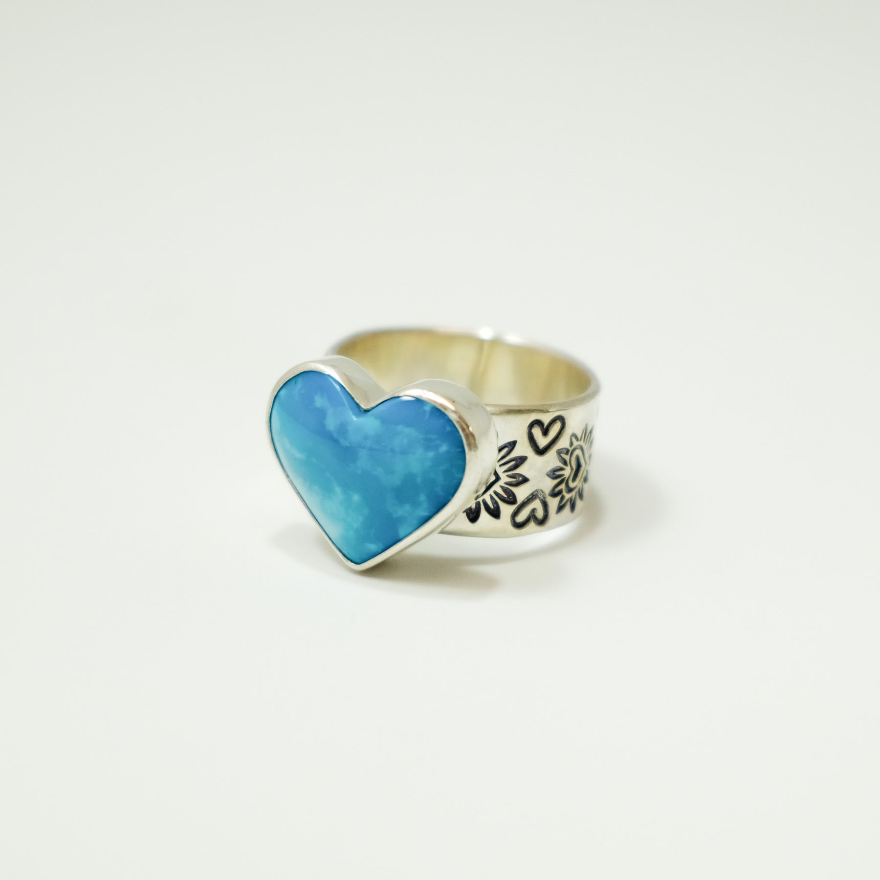 Heart Stamped Turquoise Ring