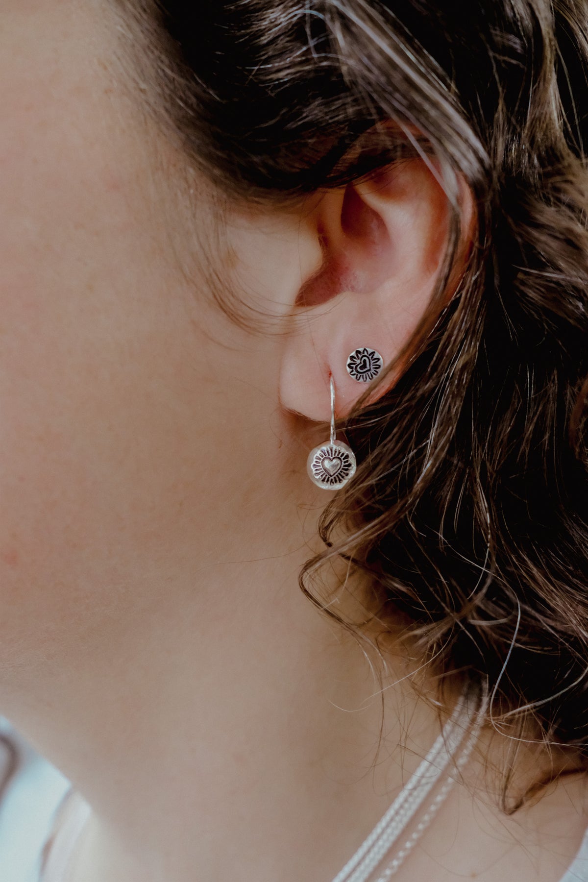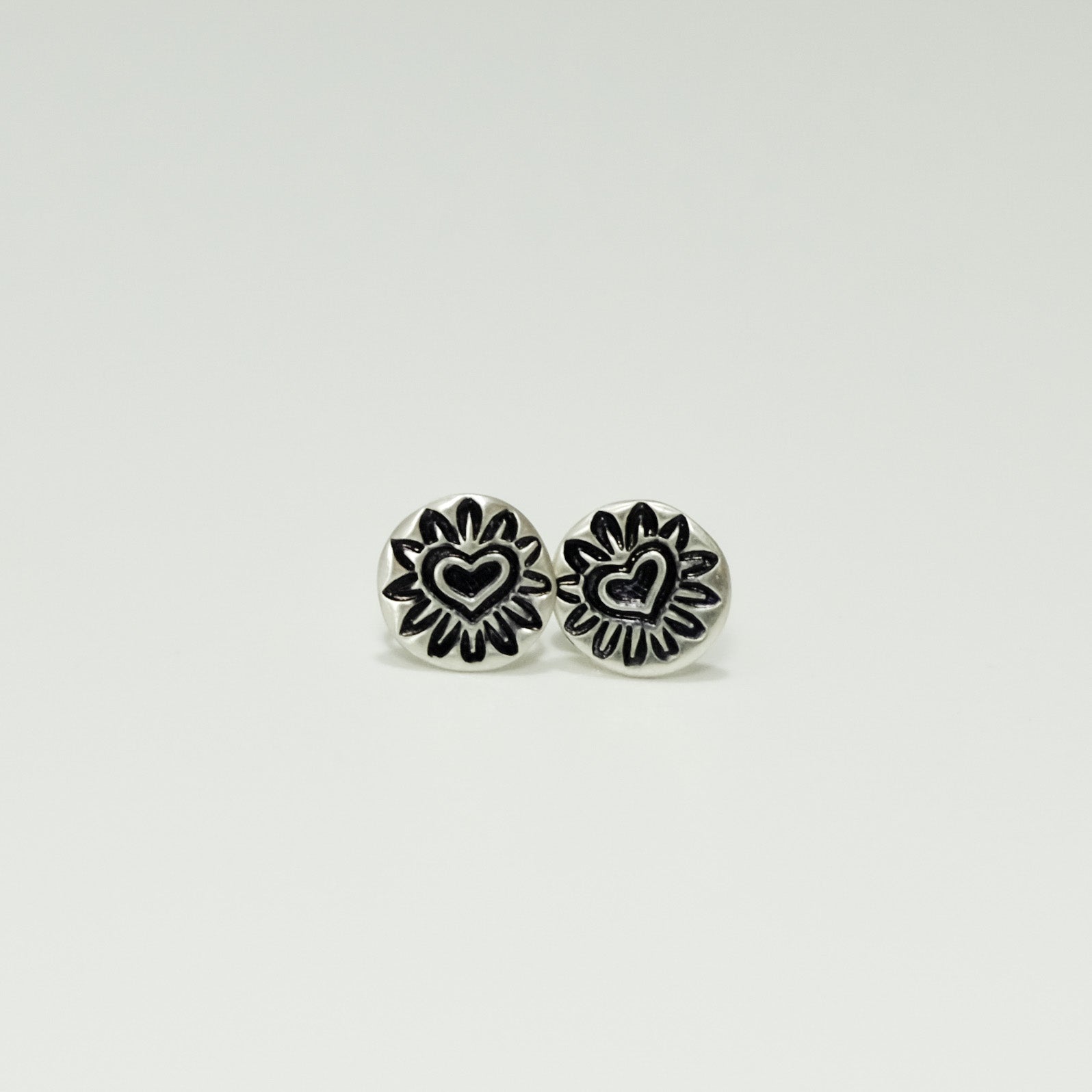Add a touch of charm and individuality to your look with these hand-stamped sterling silver stud earrings! Perfect for everyday wear, these studs are lightweight, durable, and bursting with love.