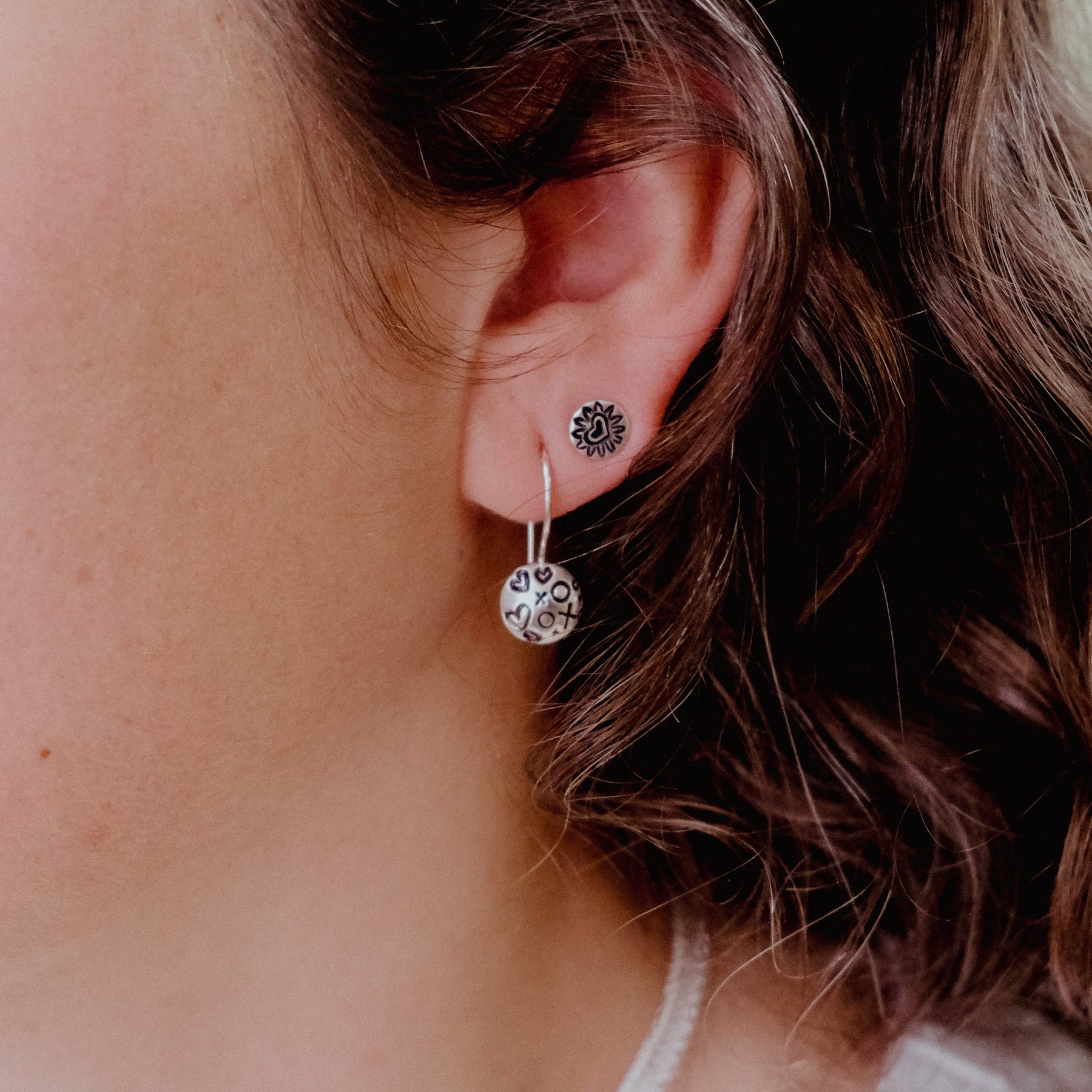 Add a touch of whimsy to your jewelry collection with the XOXO Everyday Earrings! Hand-stamped and made from recycled sterling silver, these lightweight earrings feature a charming fiery design.